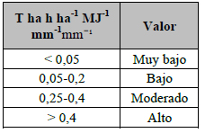Tabla 1. Rangos de erodibilidad (Renard et al., 1996)
